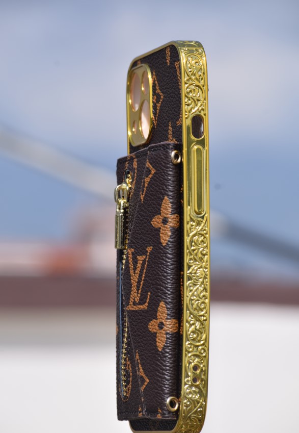 + Free ShippingStylish LV iPhone 13 case with side pocket, chain, and ATM card holder. Combines luxury and functionality for secure storage and premium protection.